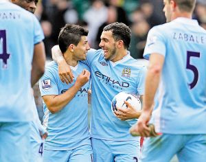 英超第11輪曼聯0-2曼城 拜利烏龍B席破門.